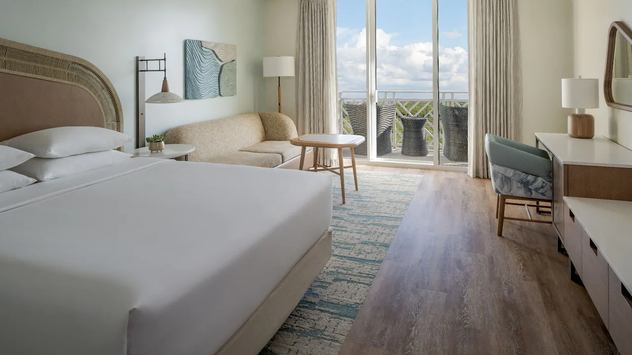 With a contemporary style and coastal-inspired ambiance, guestrooms offer plenty of Florida sunshine with floor-to-ceiling sliding glass doors. Suites offer more with multiple balconies and sweeping views of Estero Bay and the Naples area coastline. Beautifully appointed rooms and suites feature Hyatt Grand Beds, large 65” televisions with streaming capability, free Wi-Fi, and iHome® stereos.